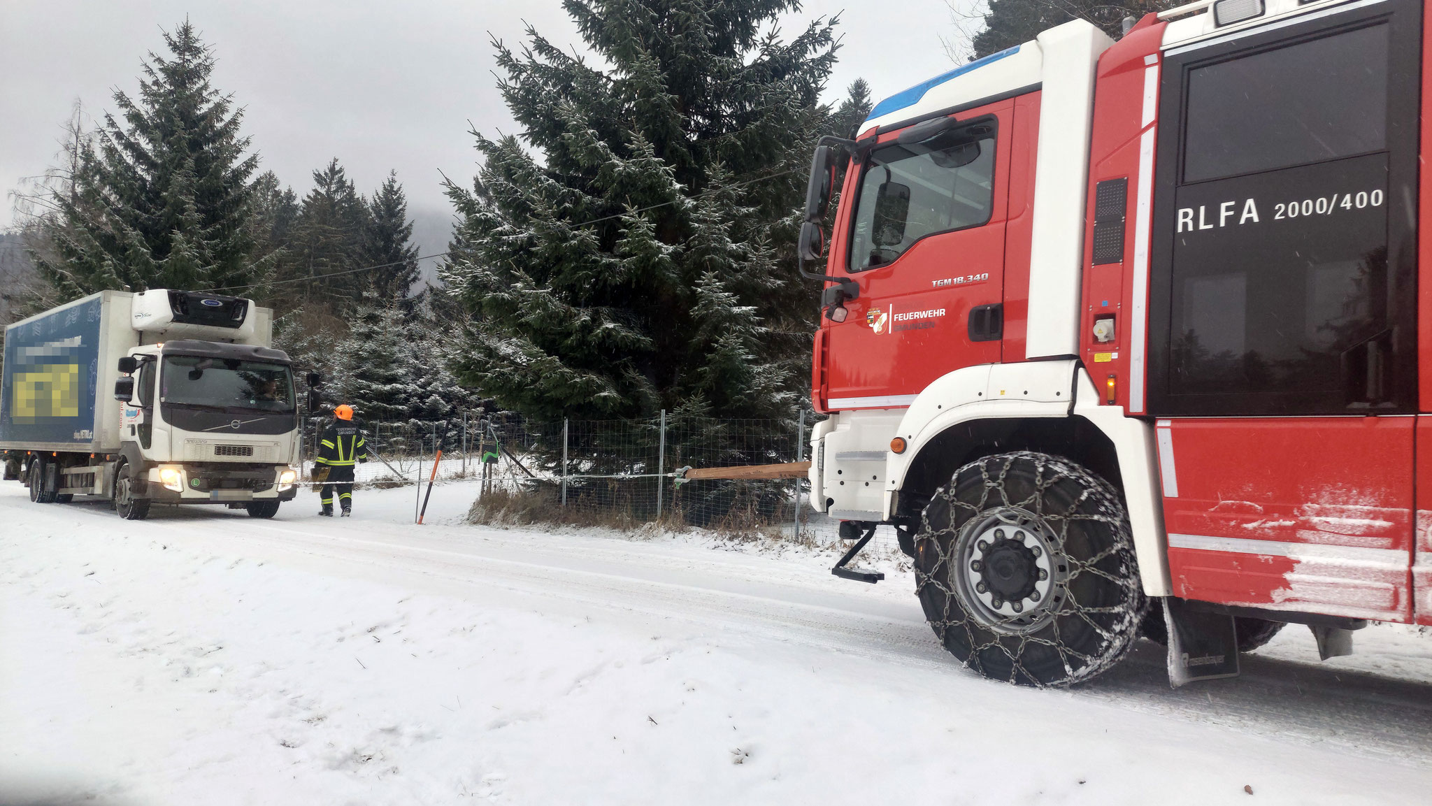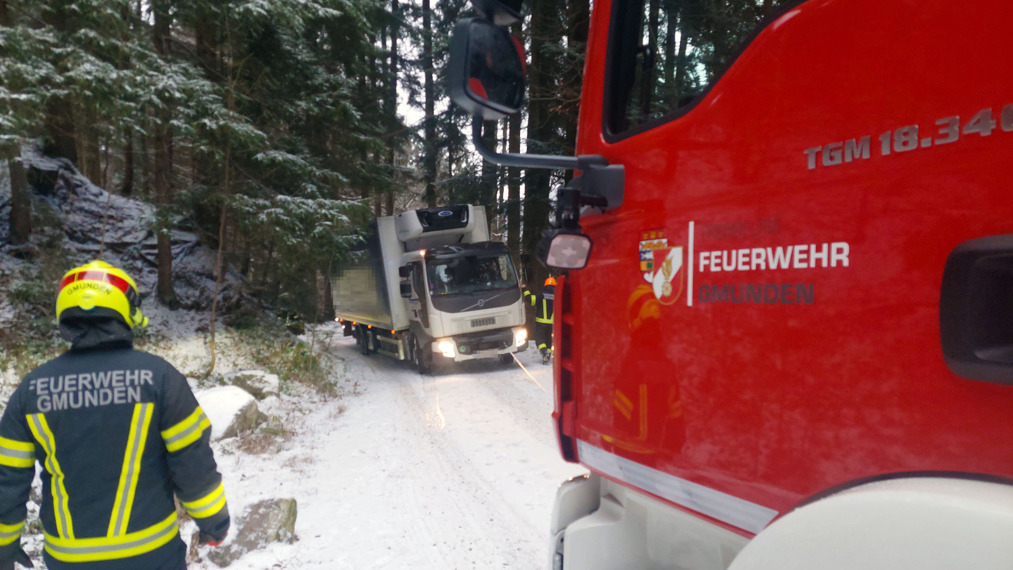Der Schneefall in der Nacht erschwerte einem Lieferanten heute in der Früh die Anfahrt zu seinem Zeil - nämlich der Grünbergalm. Auf der Forststraße kam der LKW schlussendlich zum stehen und konnte nicht mehr weiter fahren, weshalb die Freiwilligen Helfer der Feuerwehr Gmunden zu Hilfe gerufen wurden.