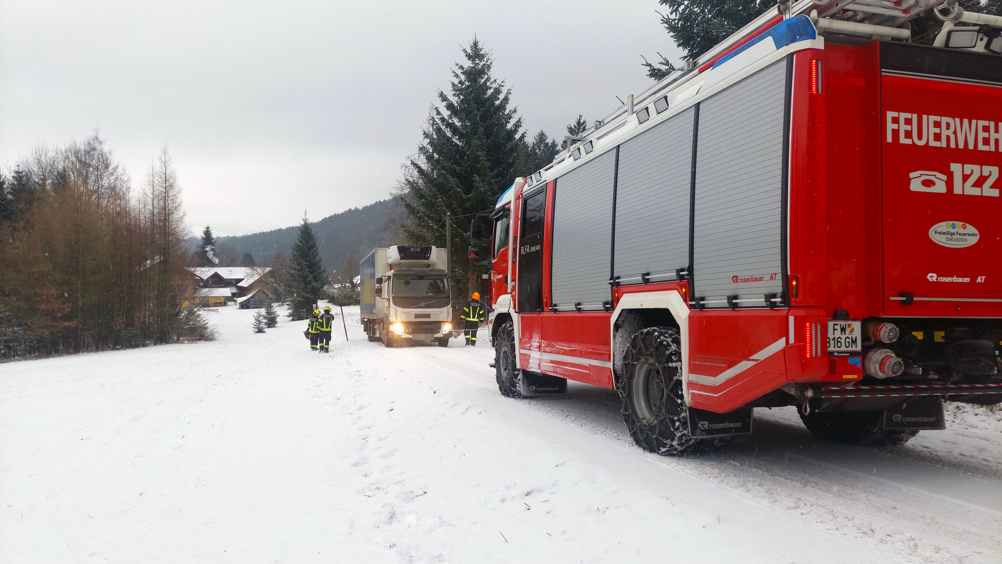 Am Donnerstag, dem 27.11., wurde die Freiwillige Feuerwehr Gmunden von der Landeswarnzentrale zu einer LKW-Bergung auf der Forststraße am Grünberg alarmiert. Ein LKW konnte auf der steilen, eisigen Fahrbahn nicht mehr weiterfahren. Mit Hilfe der Seilwinde wurde das Fahrzeug kontrolliert und sicher den Berg hinunter abgeseilt. Der Lenker konnte seine Fahrt anschließend ohne Schäden fortsetzen.